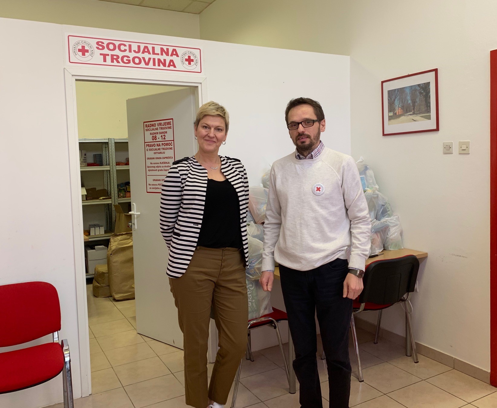 Korisnici socijalne trgovine Gradskog društva Crvenog križa Zaprešić kojih trenutno ima oko 180 dobivaju mjesečne pakete pomoći u osnovnim prehrambenim i higijenskim potrepštinama, a povodom blagdana Uskrsa i Božića uvijek korisnicima dijelimo pojačani paket koji sadrži prigodne artikle kao što su uskršnja šunka, suhomesnati proizvodi, kava, keksi i sl. rekao je Denis Ljevaković, ravnatelj Crvenog križa Zaprešić.