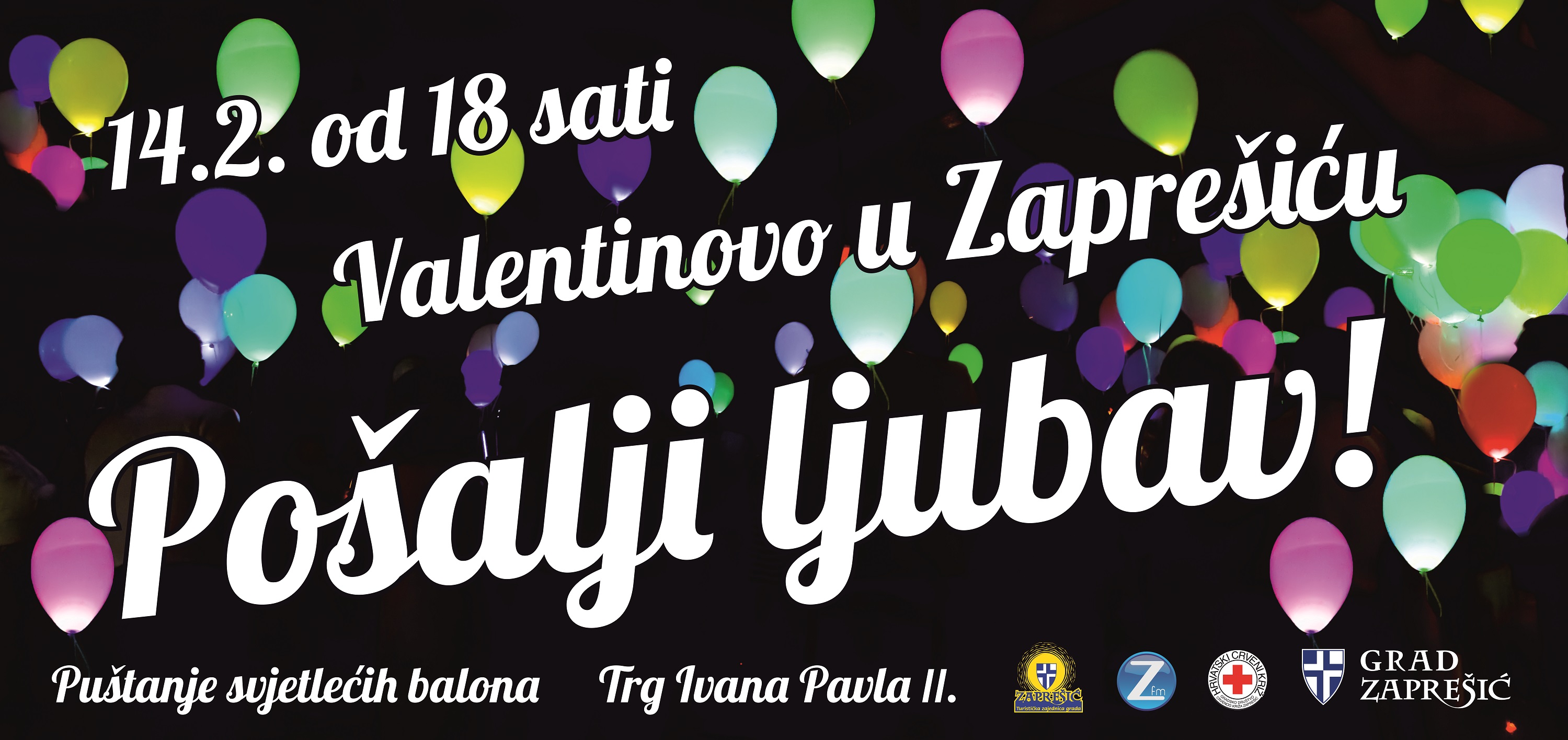 Dan zaljubljenih se već tradicionalno obilježava u Zaprešiću na glavnom gradskom trgu. Ove godine Grad Zaprešić vas poziva da s onima koje volite dođete po svoj svjetleći balon i točno u 19.30 sati obojite nebo iznad Zaprešića porukama ljubavi.